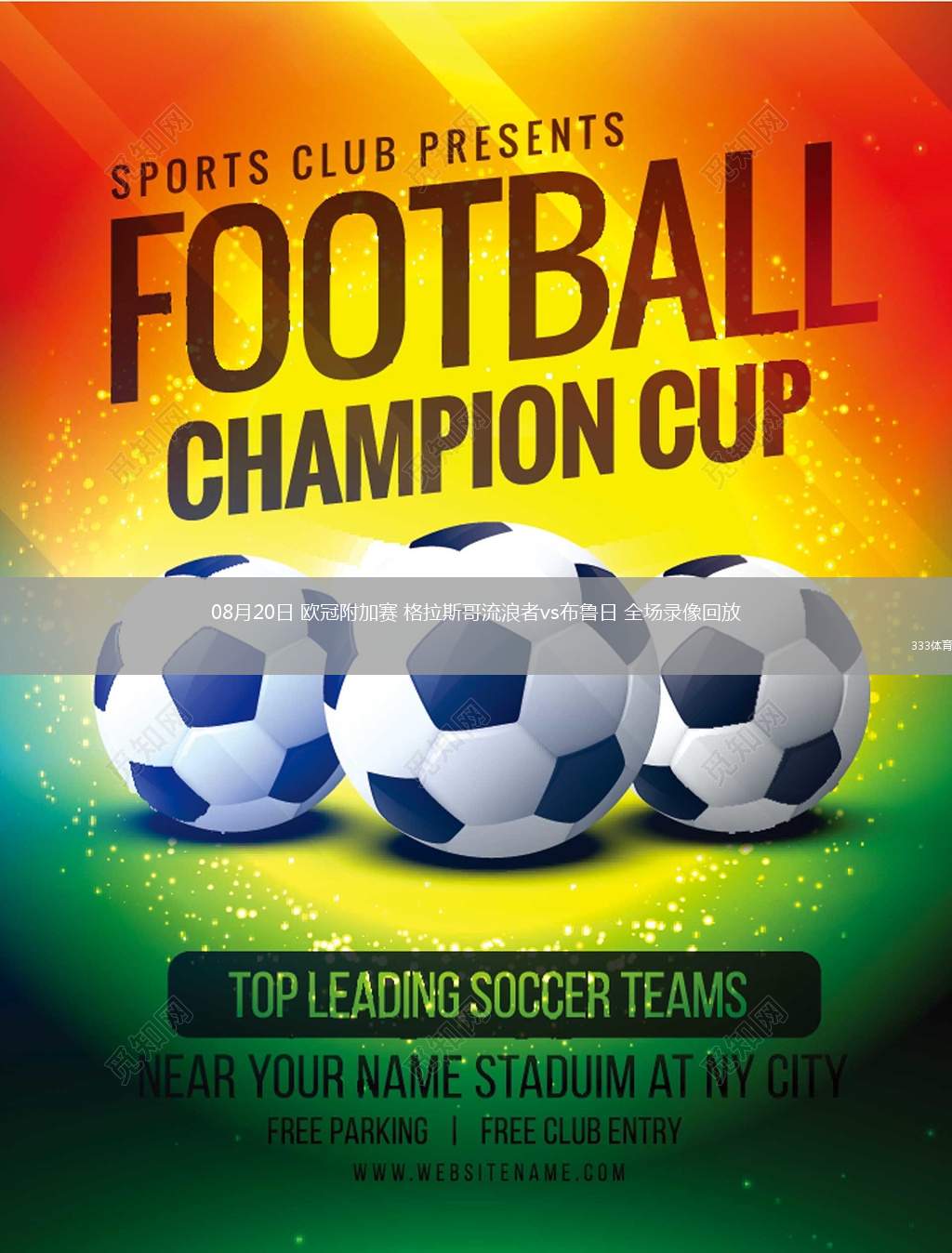 08月20日 歐冠附加賽 格拉斯哥流浪者vs布魯日 全場錄像回放